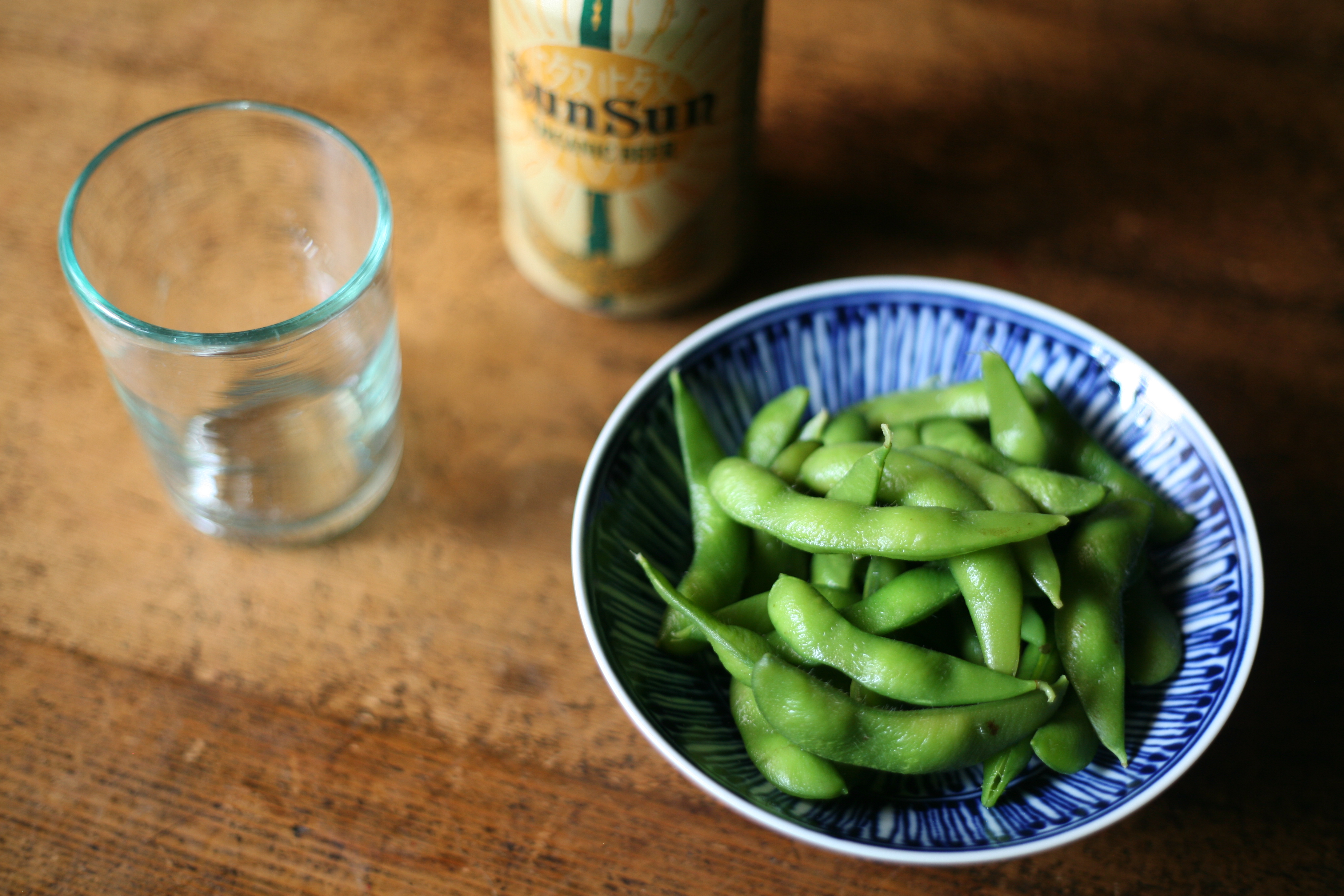 Edamame, also known as "green soybean," is widely popular as a snack for beer in Japan. It is a soybean that is harvested before it ripens. It is called "edamame (stem bean)" as it was initially boiled along with its stems. Though it is not certain when the Japanese started to eat edamame, it is said that it existed since the Nara or Heian period. Literature in the Edo period describes "edamame sellers" that appeared in the streets during summertime.
