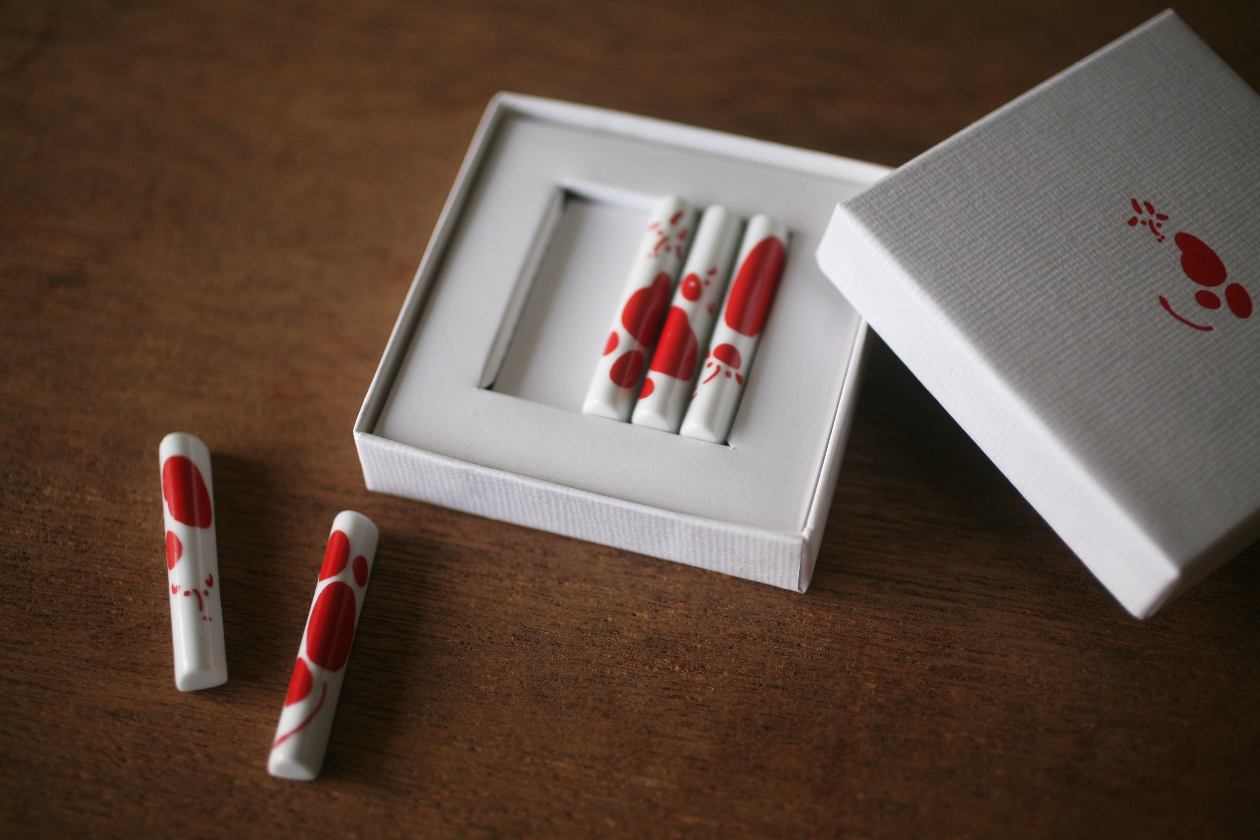 The traditional Eto Chopstick Rests for the year-end and New Year holidays is impressive with its auspicious red seal that holds your new chopsticks. A set of five chopsticks in a box is recommended as a souvenir at New Year's greetings. Why not send them along with new chopsticks to your distant friends and those who have been good to you?