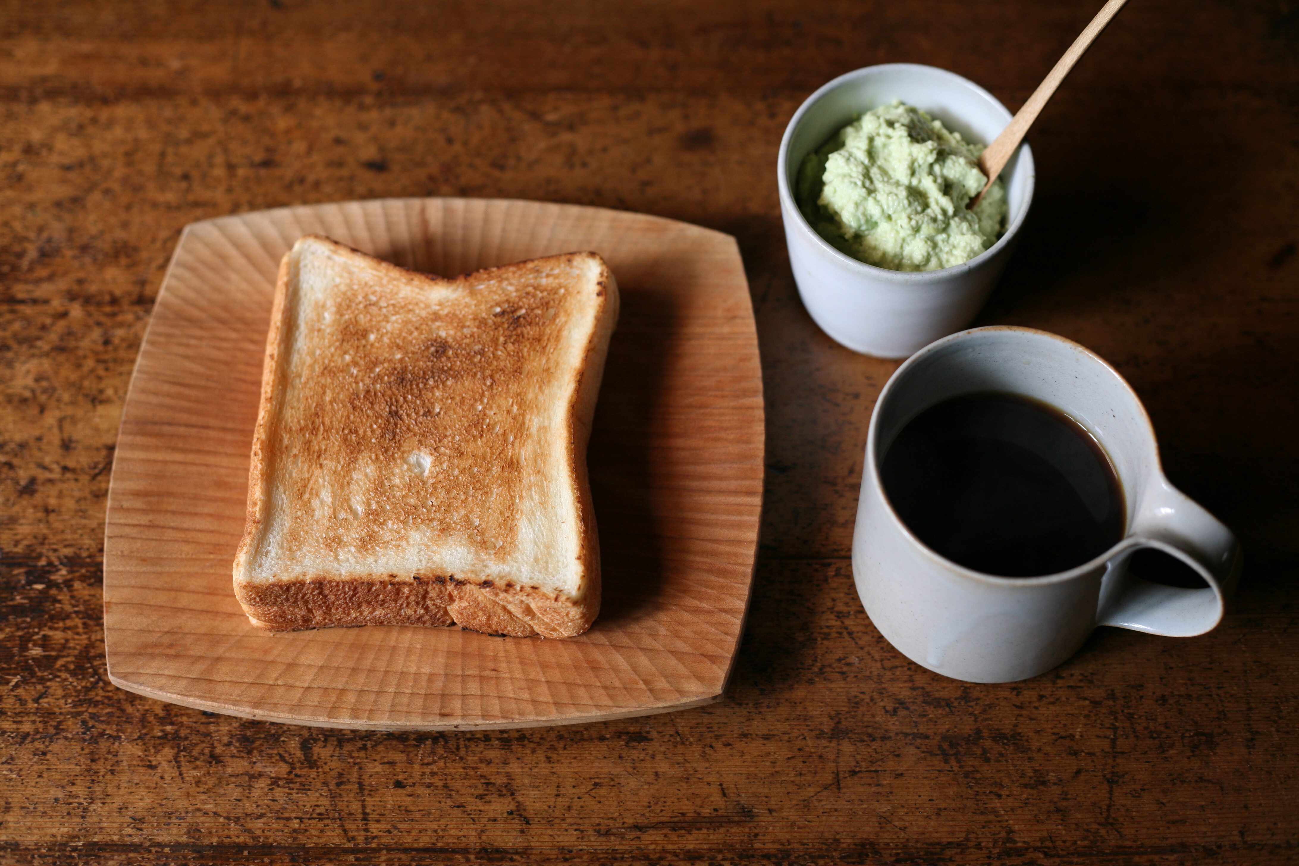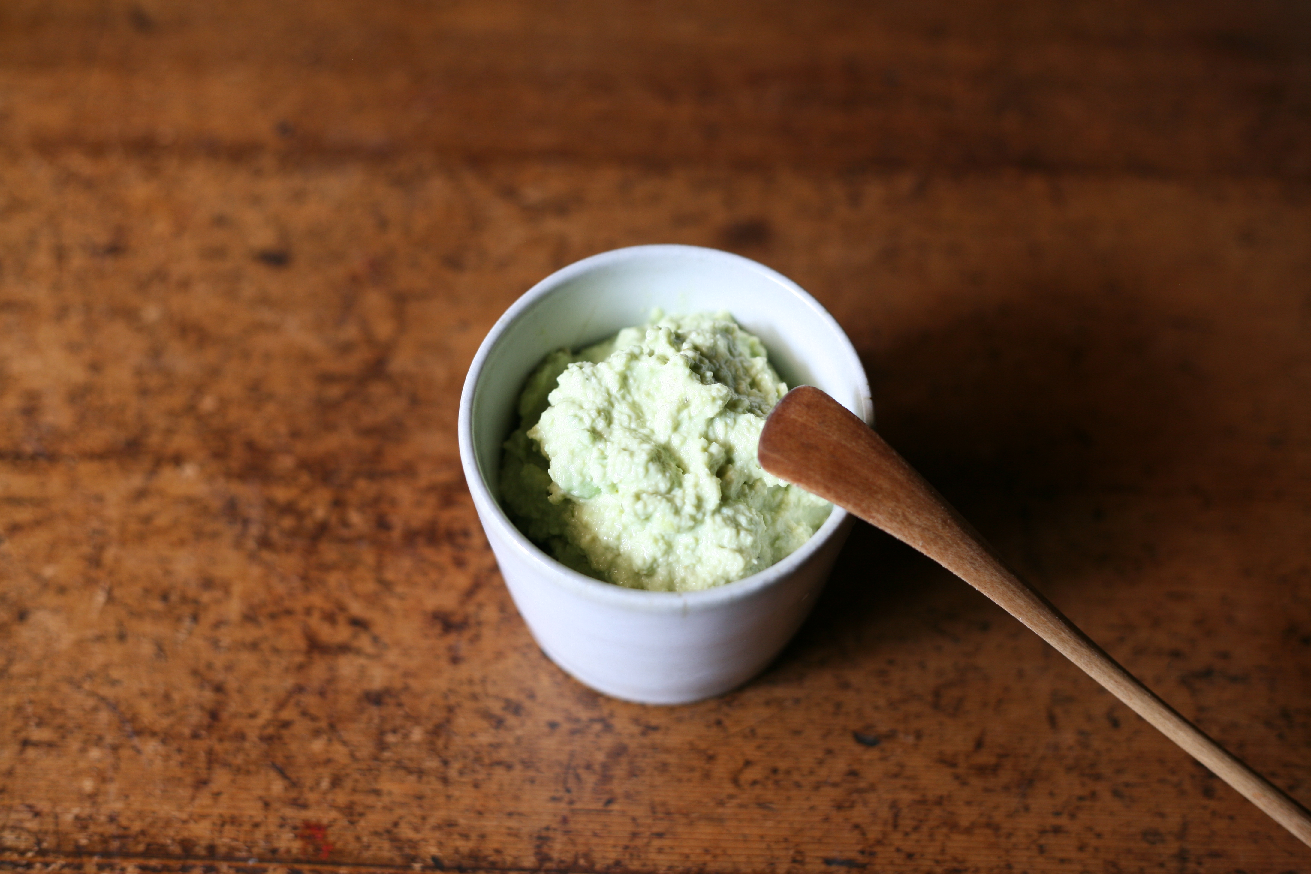 The light green cream tastes and smells as fresh as it looks. A squeeze of lemon juice prevents the avocado from discoloring and adds even more freshness to the flavor. The resulting cream can be served in the Sobachoko, with the Jam Spoon, on bread.