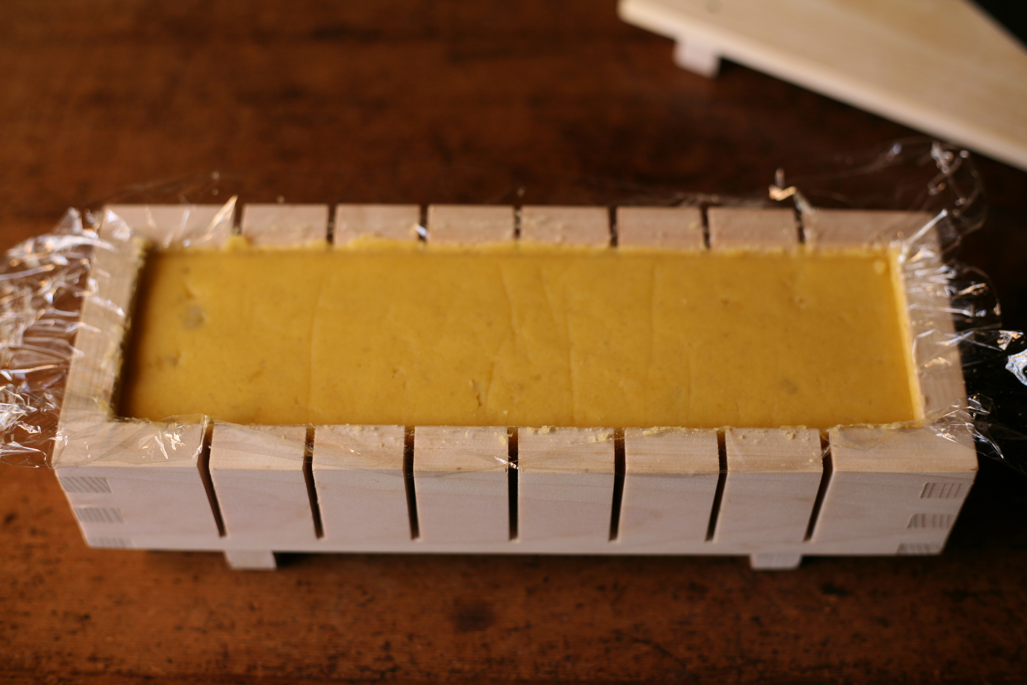 Place 4 into the Pressed Sushi Box with plastic wrap and press down on the mold to prevent air from entering.