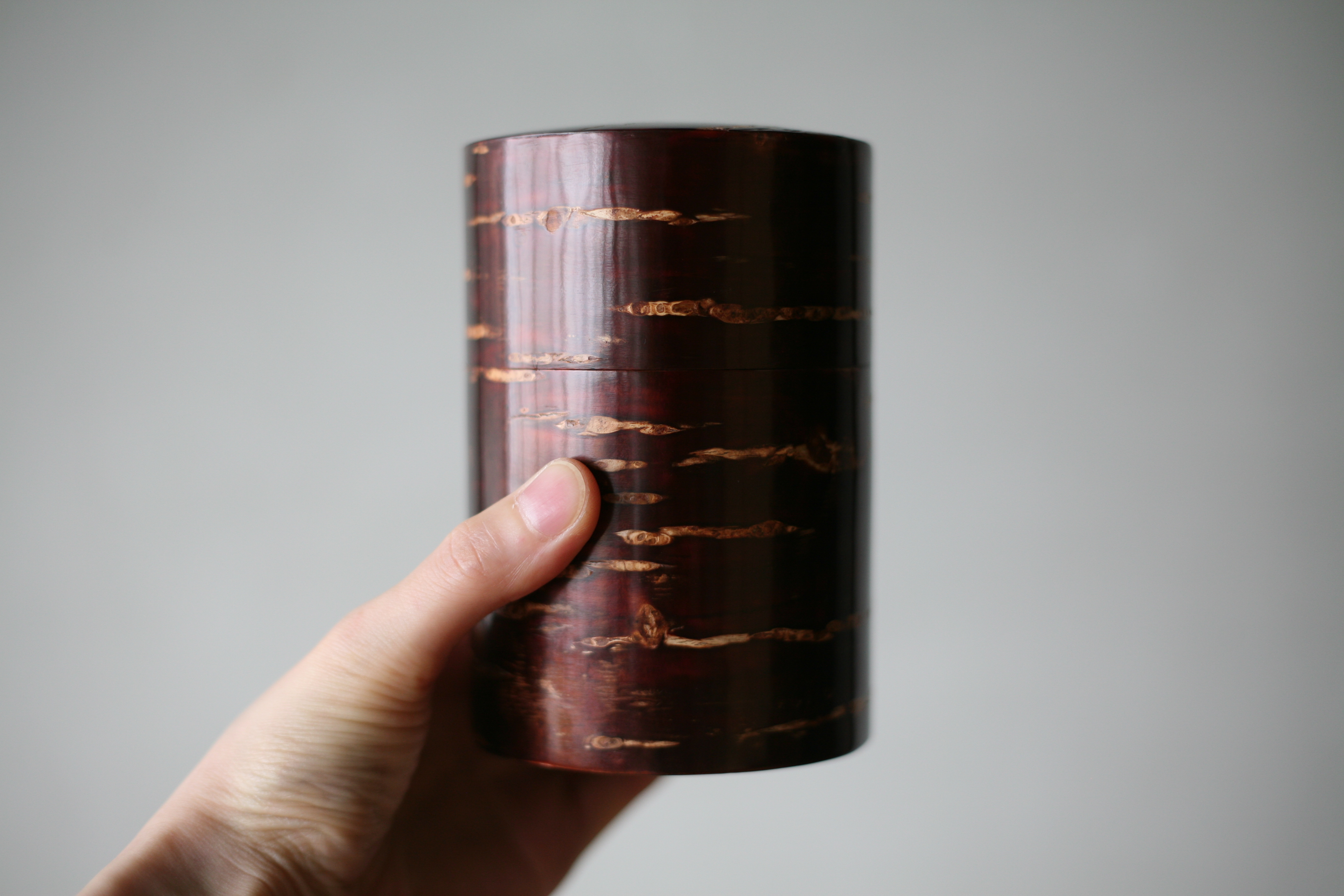 Many Japanese tea drinkers would like to have a tea canister made of cherry tree bark. Fujiki Denshiro Shoten has been making high-quality birch work in Kakunodate, Akita Prefecture, since its establishment in 1851 in the Edo period.