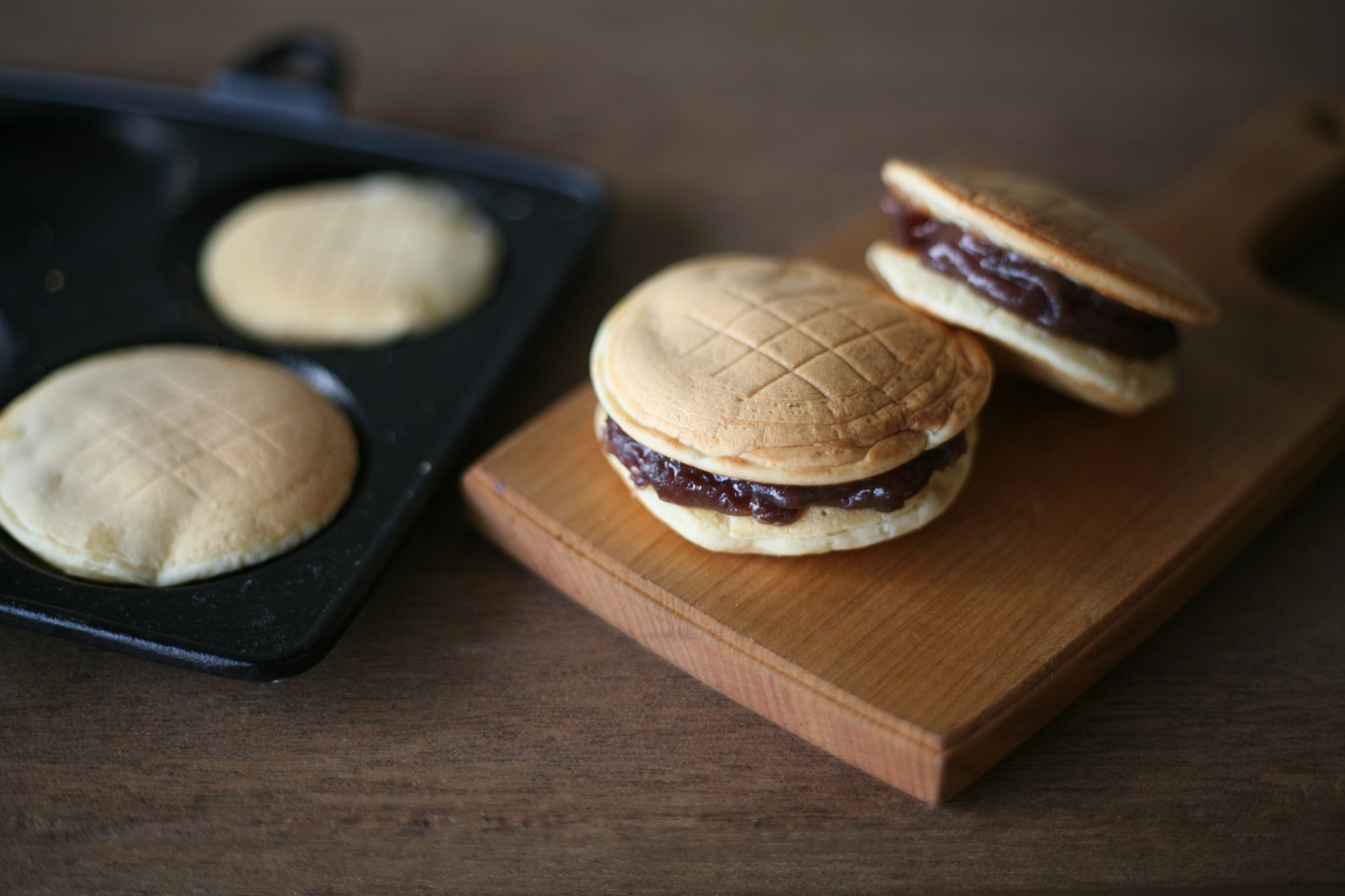 To make a dorayaki-like crust, add a sweetener such as honey or mirin to the egg, flour, and butter. To make a chunky dough, you can mix the flour with white bean flour. You can make them more easily by using a pancake mix.