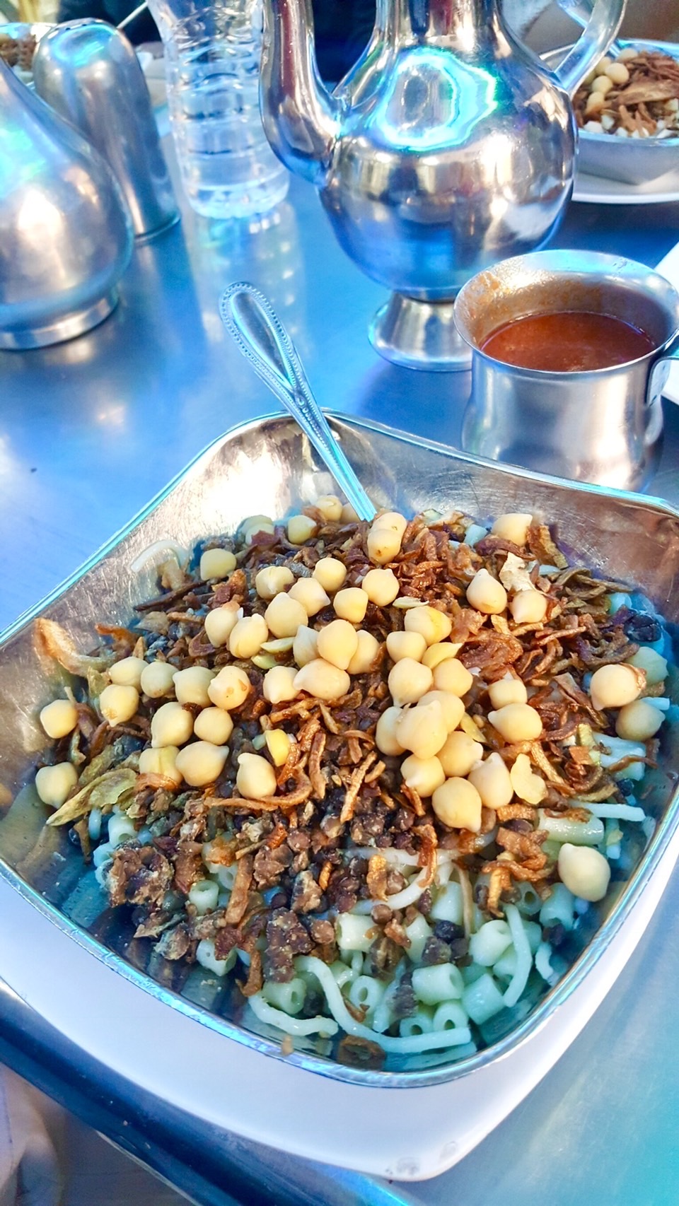 Finally, when it comes to Egypt, mint tea is always sipped at least once during your stay. The brewing process is unique: a large quantity of tea leaves, fresh mint, and a surprising amount of sugar are added to the boiling water. When the water boils to the point of overflowing, the pot is raised high overhead, and from there it is transferred at once to an empty pot. The sweet tea, full of sugar, splatters around the area, but people don't mind and repeat it over and over again. The bowl it comes in is also sticky with sugar, but they don't mind. This is because mint tea brewed in such a painstaking manner is not only sweet, but also surprisingly delicious. Mint tea served in tourist spots and trendy cafes is not made the same way and does not taste good.