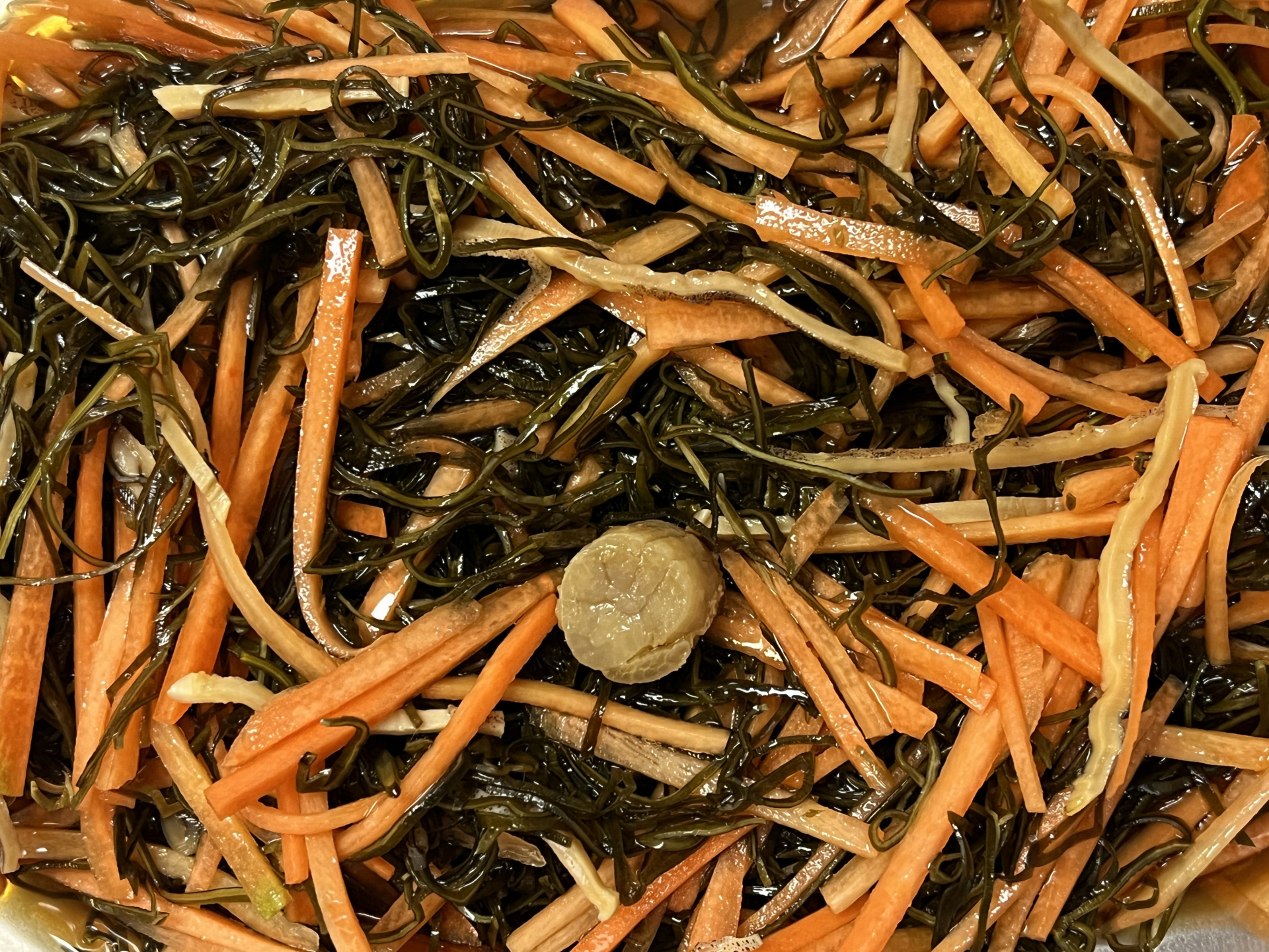 One of my favorite burdock dishes is Matsumae-zuke, a New Year's staple. It is a local dish from Hokkaido made by finely shredding dried squid and kombu seaweed and marinating them in soy sauce, mirin, sake, and sugar. While carrots, herring roe, and salmon roe are often added, some recipes include burdock root. Adding thinly shredded raw burdock root provides a pleasant crunch and an earthy aroma that makes a nice accent. This is a dish my mother started making for us at New Year's some time ago.